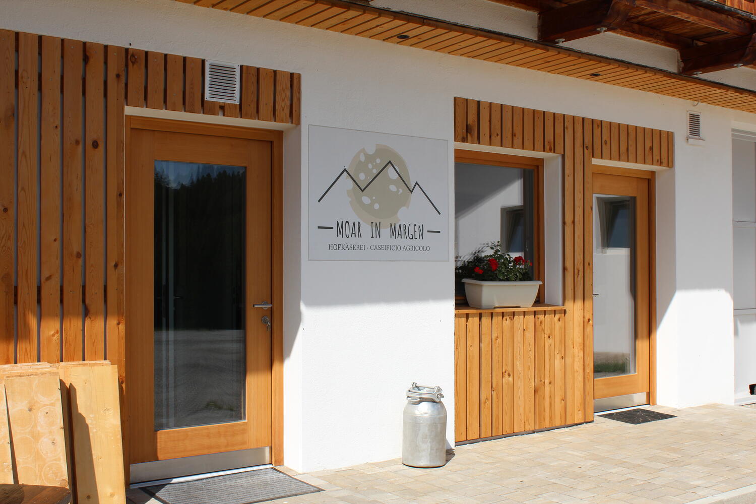 De kaasmakerij Moar in Margen is een kleine, moderne maar karakteristieke structuur, geïsoleerd aan de rand van een groene vlakte omgeven door naaldbossen.